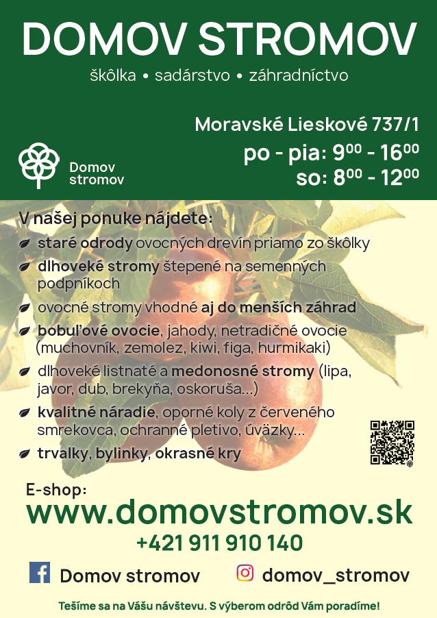 Ponuka a viac informácií na našom eshope: www.domovstromov.sk